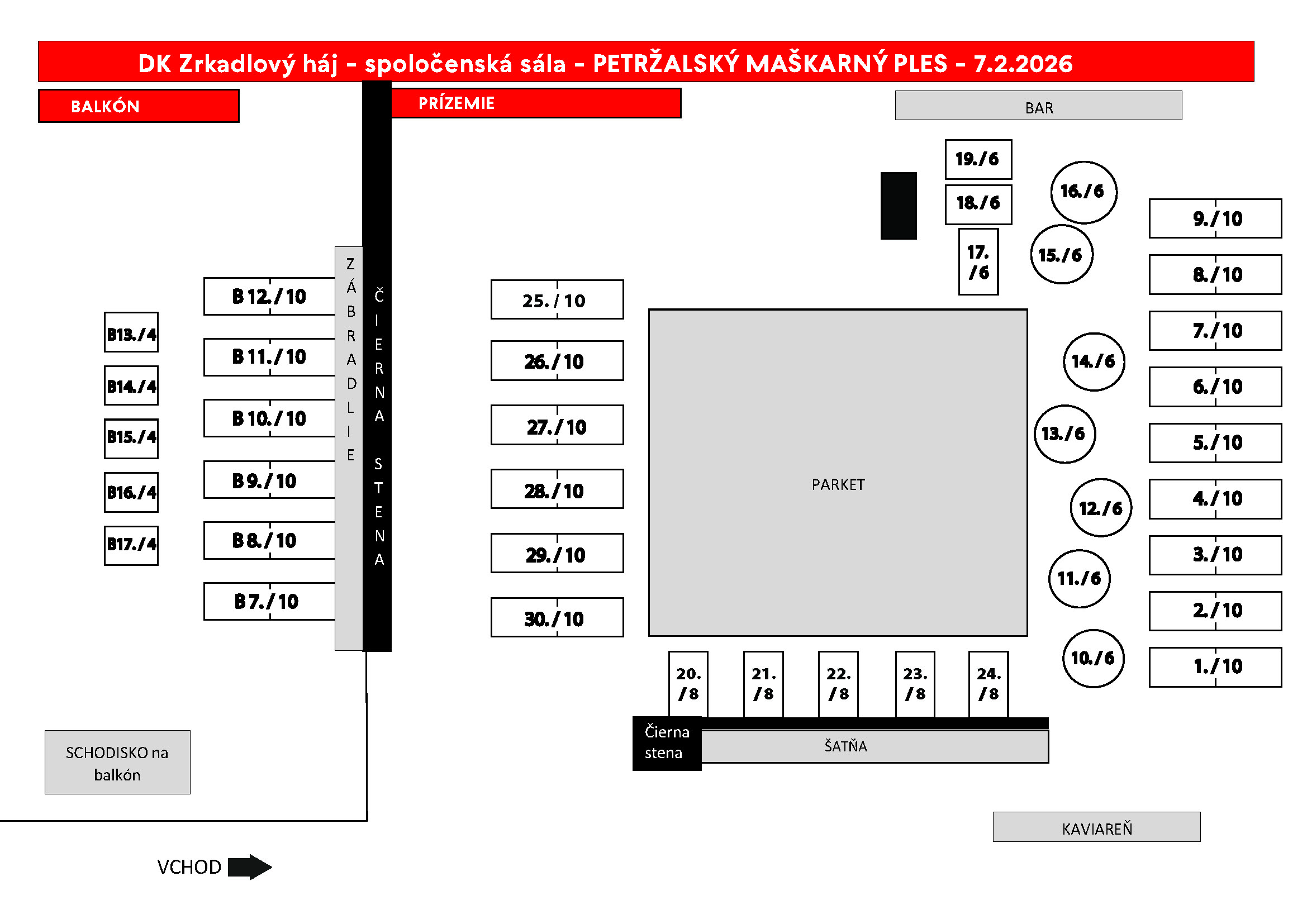 80 € spoločenká sála / 75 € balkón