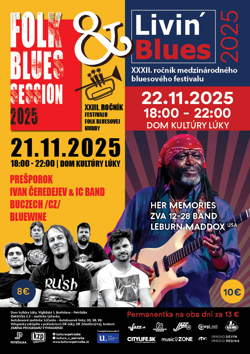 32. ročník bluesového festivalu LIVIN' BLUES bude spolu s FOLK BLUES SESSION dvojdňovým maratónom kvalitnej folkovej a bluesovej hudby