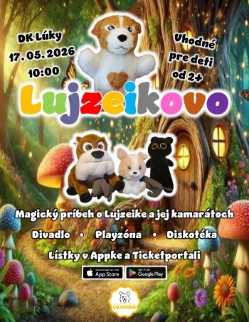 Užite si Lujzeikine prvé fantastické dobrodružstvá pri ktorých spoznáva tetu Agátku s ujom Bôčikom a ich priateľov dlhočiznú Emu, verného Budyho a potmehúta Cézara. Počas podujatia sa ponoríte do rozprávky, pozriete si dogshow, vytvoríte si darček na tvorivých dielničkách a zatancujete a zaspievate si spolu s MASKOTOM na parádnej diskotéke.