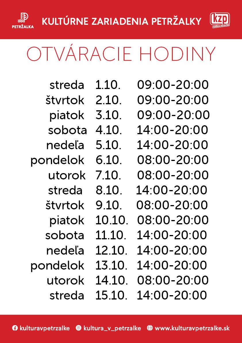Rezervácie a informácie o podujatiach: 02 63 824 390, email: ccc@kzp.sk